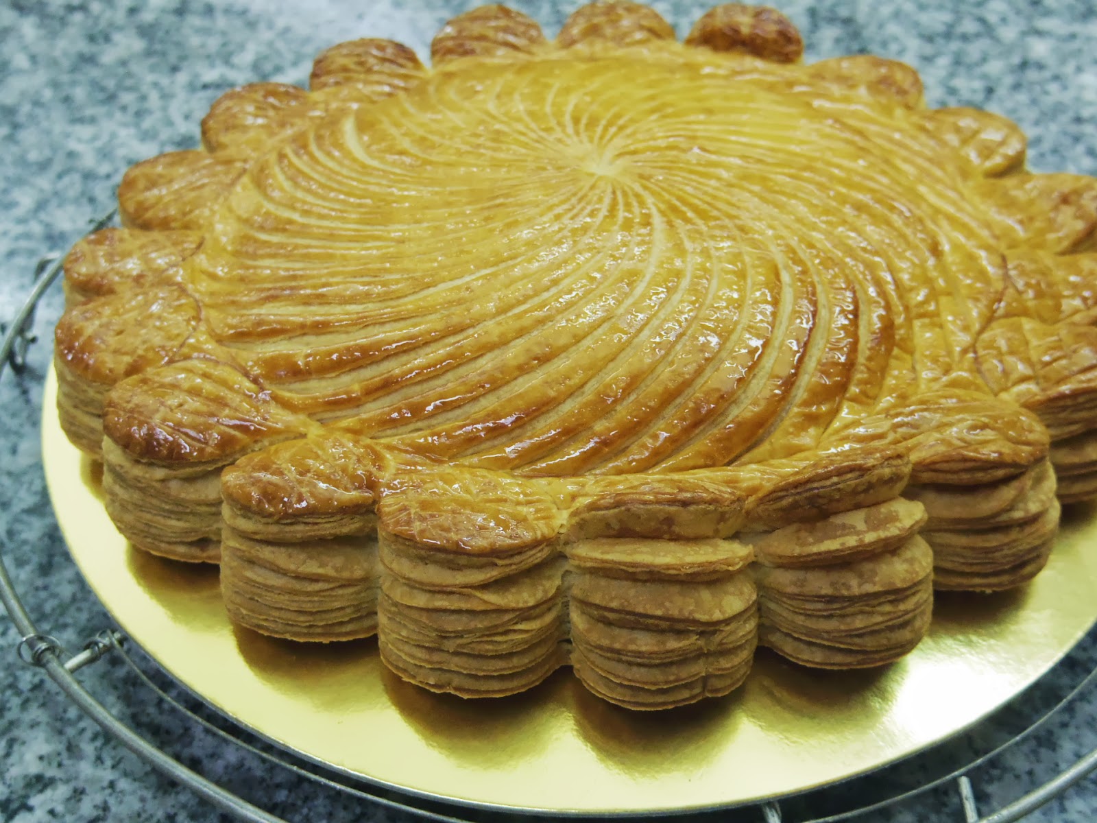 The Pithviers is a entremet with a puff pastry bottom, piped with Frangipane cream (almond + pastry cream) in the middle, and then covered with another layer of puff pastry, and rayer (decorated using the back of the knife) before being brushed with egg wash and bake. The tedious work, is actually trying to carefully cut out the curved sides which were made using cookie cutters.